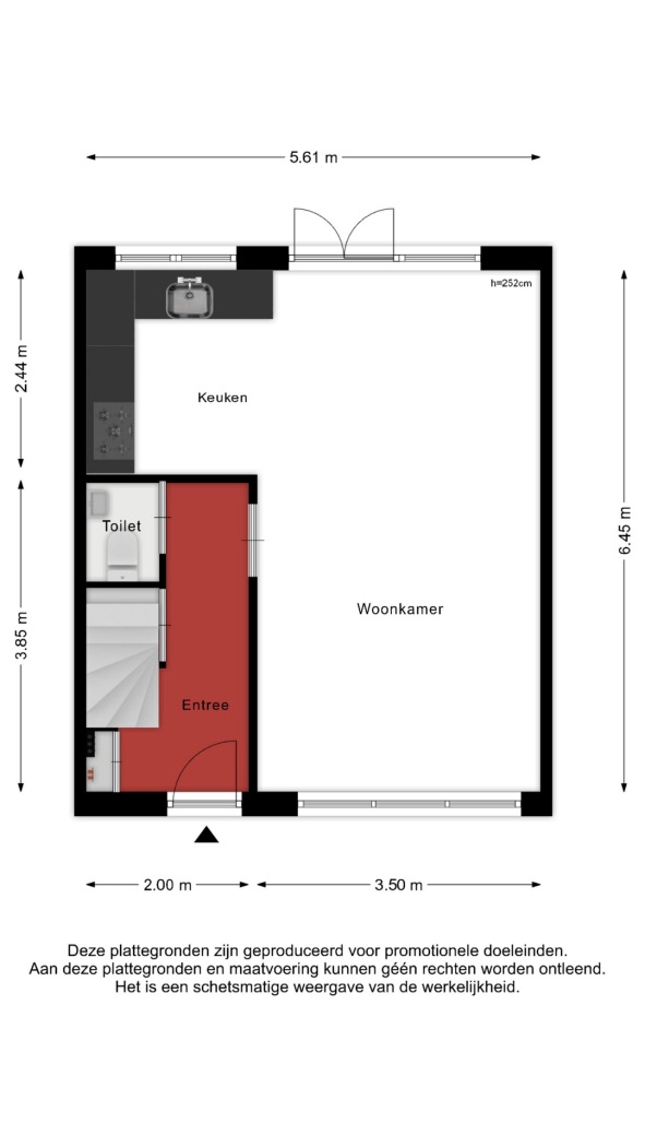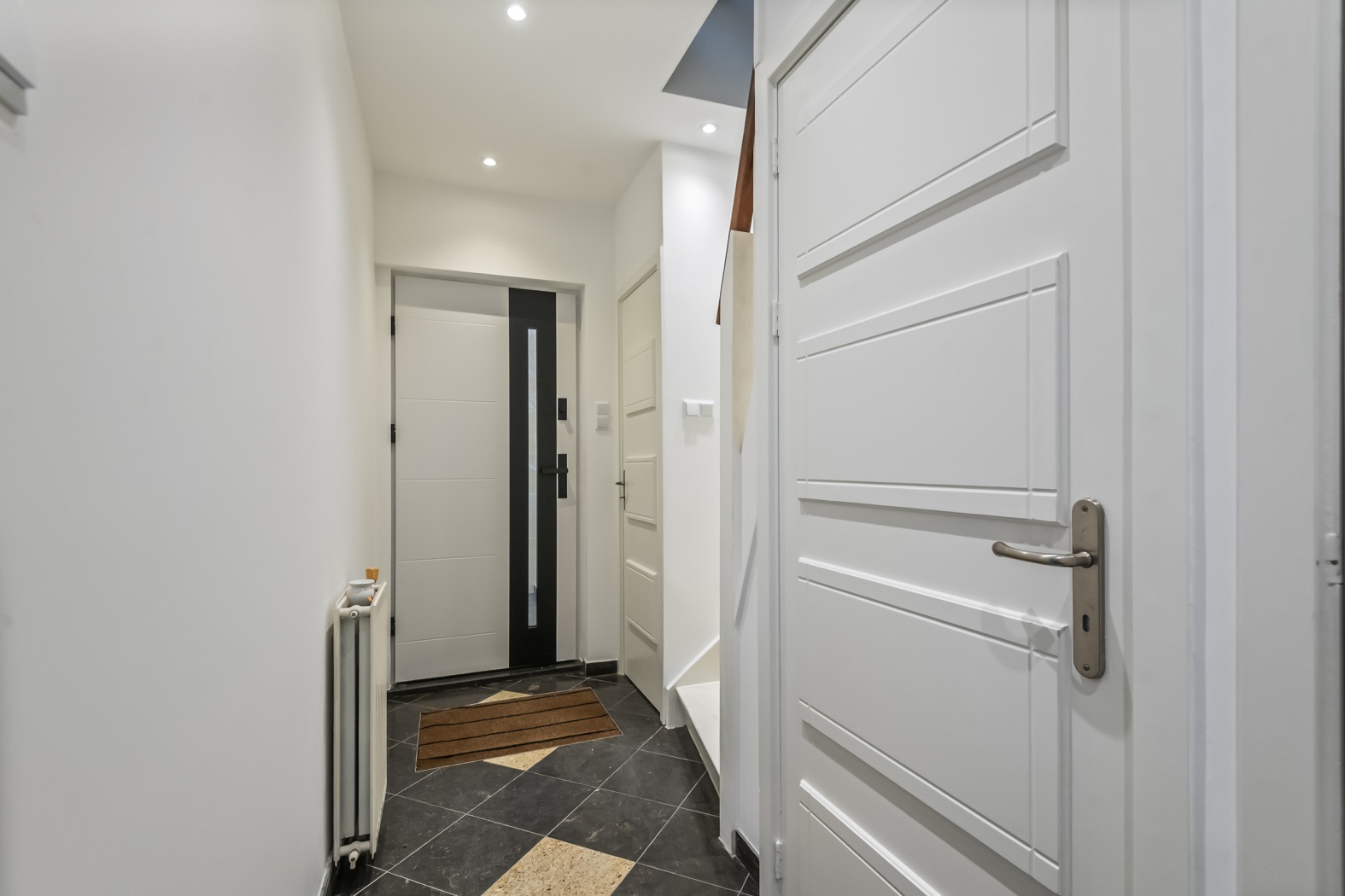 Via de entree heb je direct toegang tot de woonkamer, de toiletruimte, de meterkast, trapkast en de trapopgang naar de eerste verdieping.