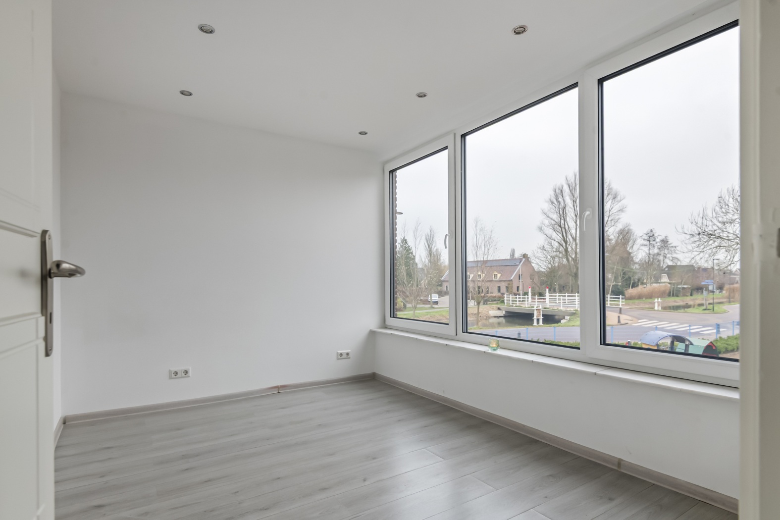 De indeling van deze verdieping is volledig herzien en praktisch ingericht. Ook hier zijn de wanden en plafonds strak gestuct en voorzien van moderne inbouwspots. De nieuwe kunststof kozijnen zorgen voor extra comfort, goede isolatie en een nette, eigentijdse uitstraling.