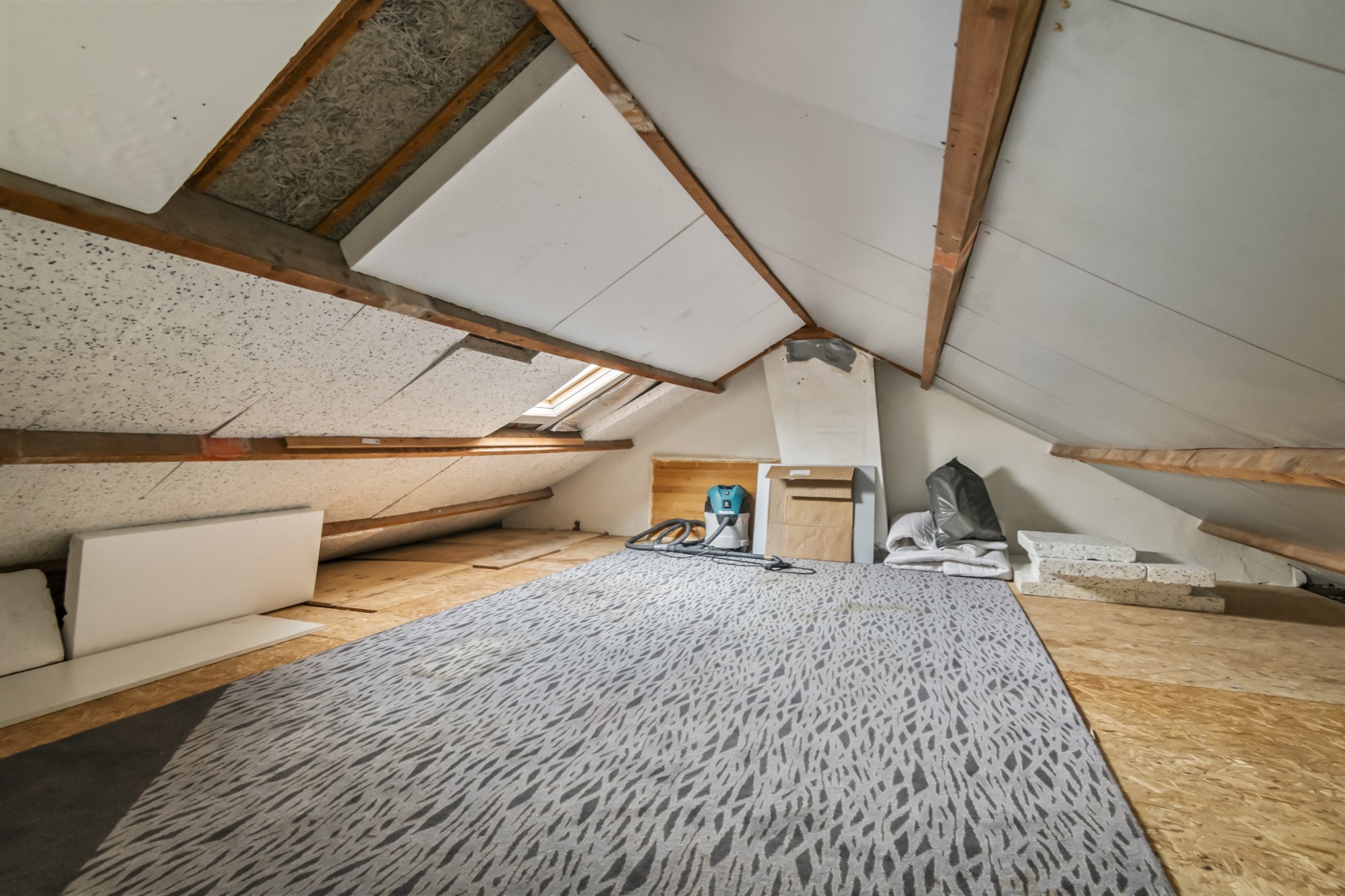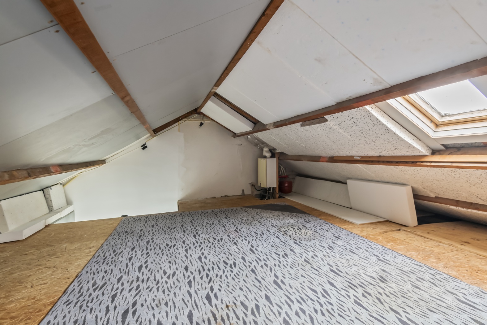 Via een vaste spiltrap bereik je de zolderverdieping. Deze ruimte is voorzien van een dakraam, wat zorgt voor daglicht en ventilatie. De zolder is ideaal als praktische bergruimte en hier bevindt zich tevens de cv-combiketel.