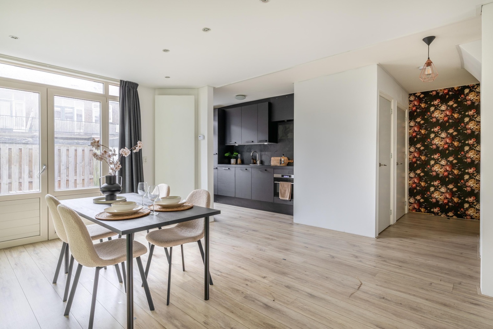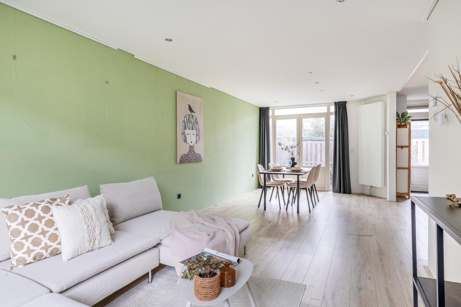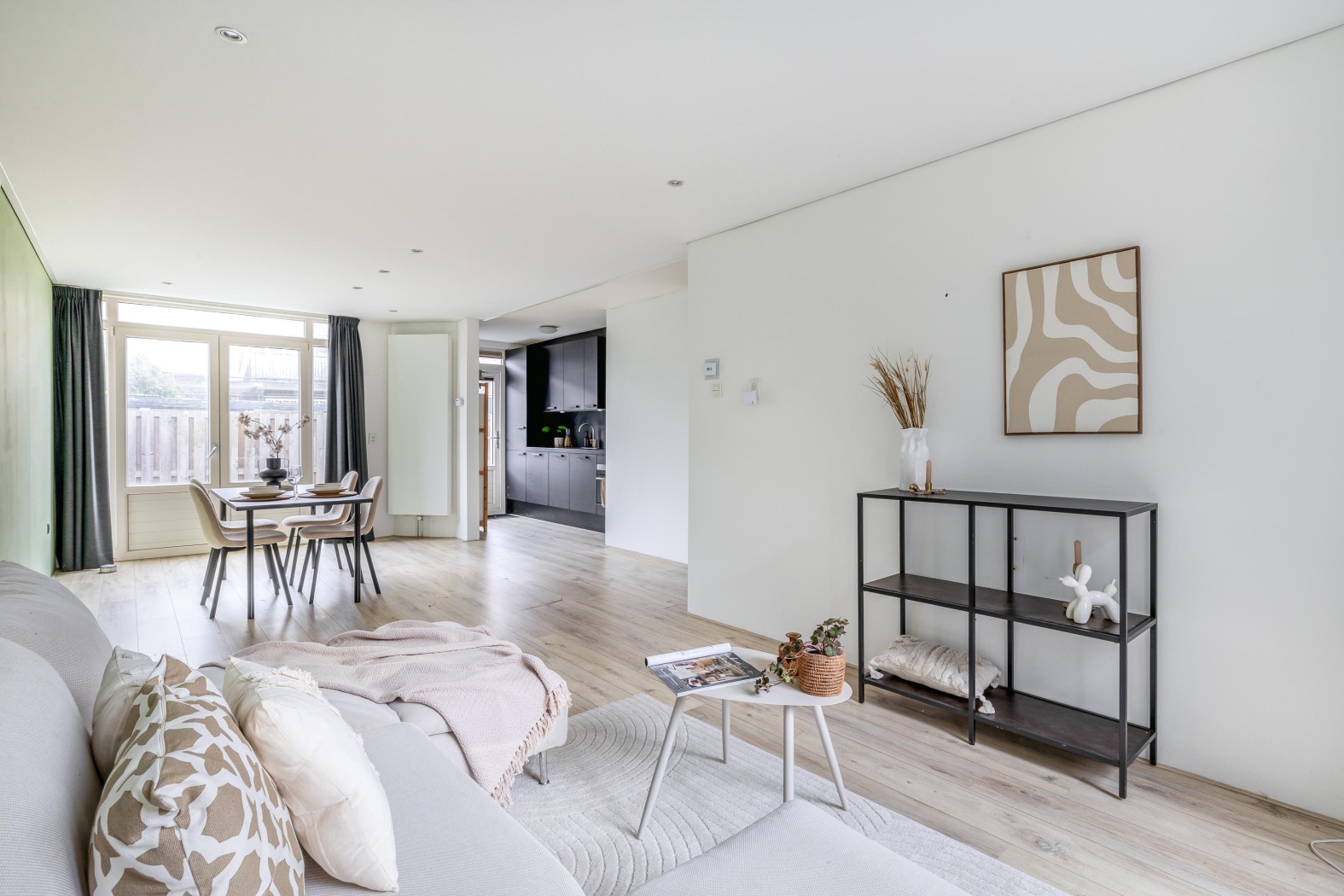 Deze goed ingedeelde benedenwoning beschikt over een ruime en lichte woonkamer. Dankzij de openslaande deuren naar de tuin wordt buiten hier echt een verlengstuk van binnen. Op zonnige dagen zet je de deuren open en geniet je van een heerlijke verbinding tussen woonkamer en tuin.