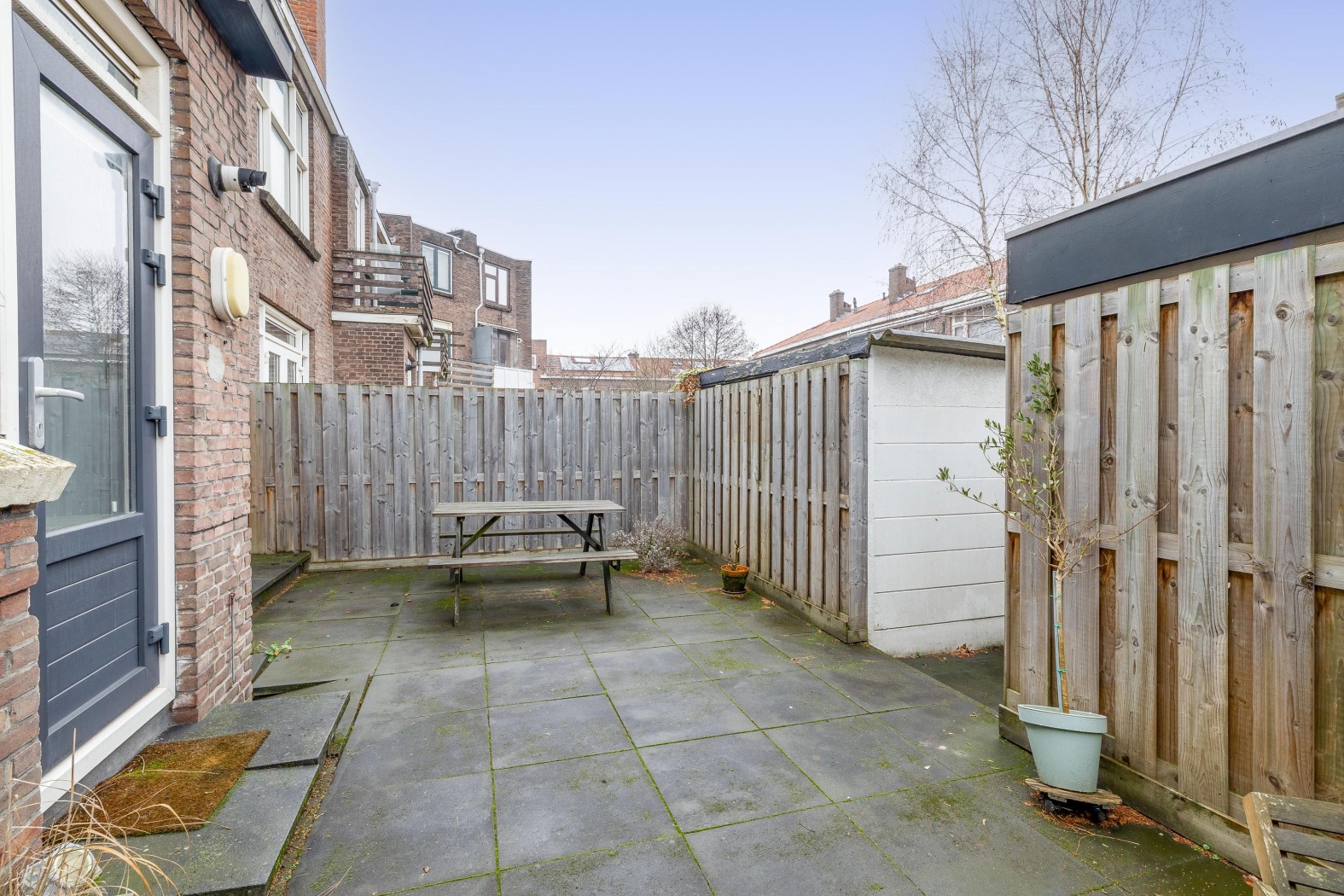 De tuin is van goed formaat, gelegen op het noordoosten, en biedt voldoende ruimte voor een gezellige zithoek en groen naar eigen wens in te richten. Achterin de tuin vind je een houten berging, handig voor extra opslagruimte en het stallen van fietsen. De tuin is bereikbaar via een achterom.