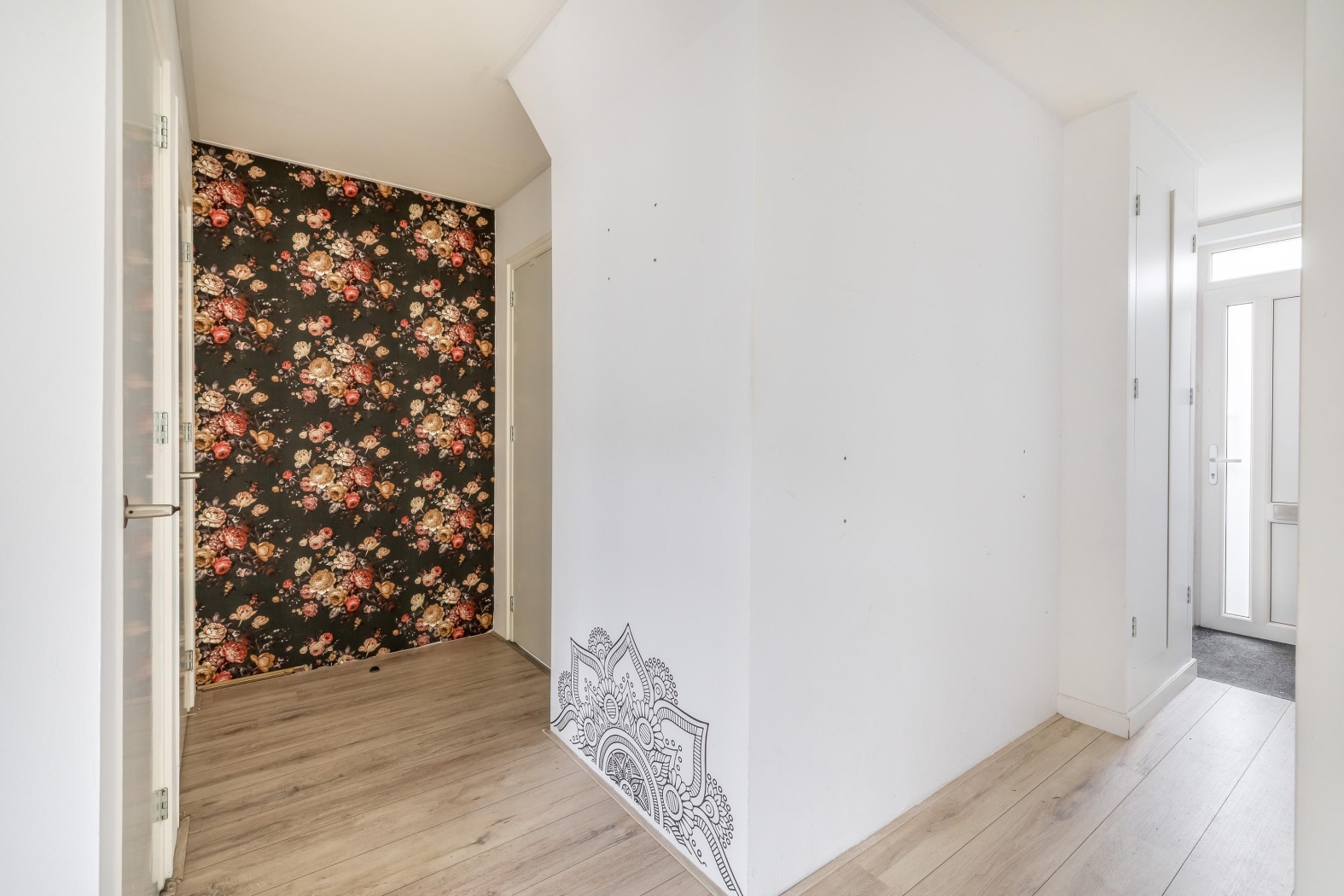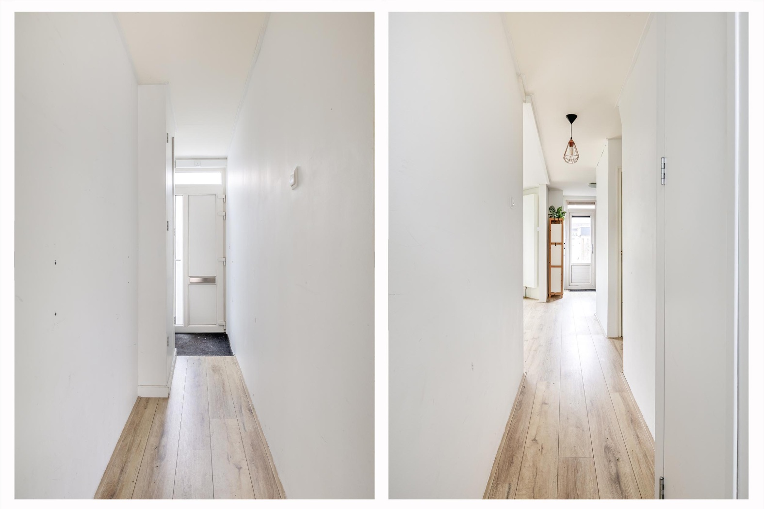 Via de hal bereik je de slaapkamer en de badkamer. De slaapkamer is ruim genoeg om comfortabel in te richten. De royale, moderne badkamer is volledig betegeld en afgewerkt met inbouwspots. Hier vind je een ruime inloopdouche, een stijlvol wastafelmeubel en een toilet. Daarnaast is er een aparte ruimte met aansluitingen voor de wasmachine en droger, netjes uit het zicht en praktisch ingedeeld.