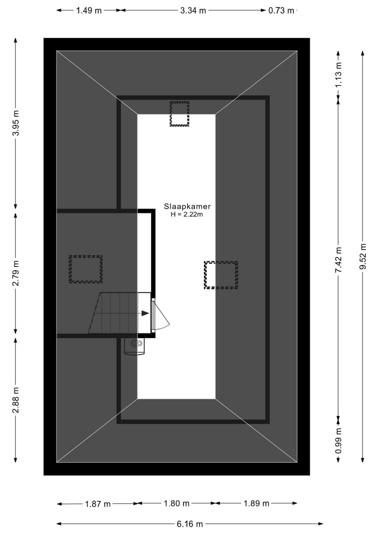 - Twee slaapkamers, waarvan één op de zolderverdieping