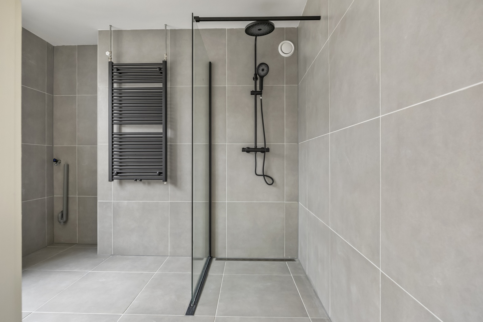 - Badkamer met inloopdouche en wasmachineaansluiting