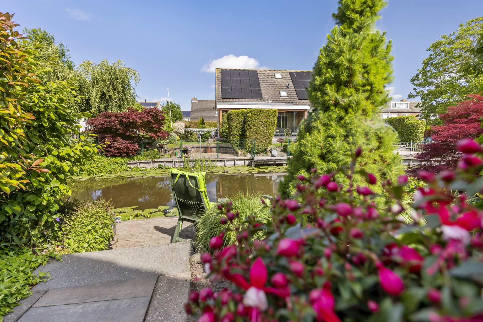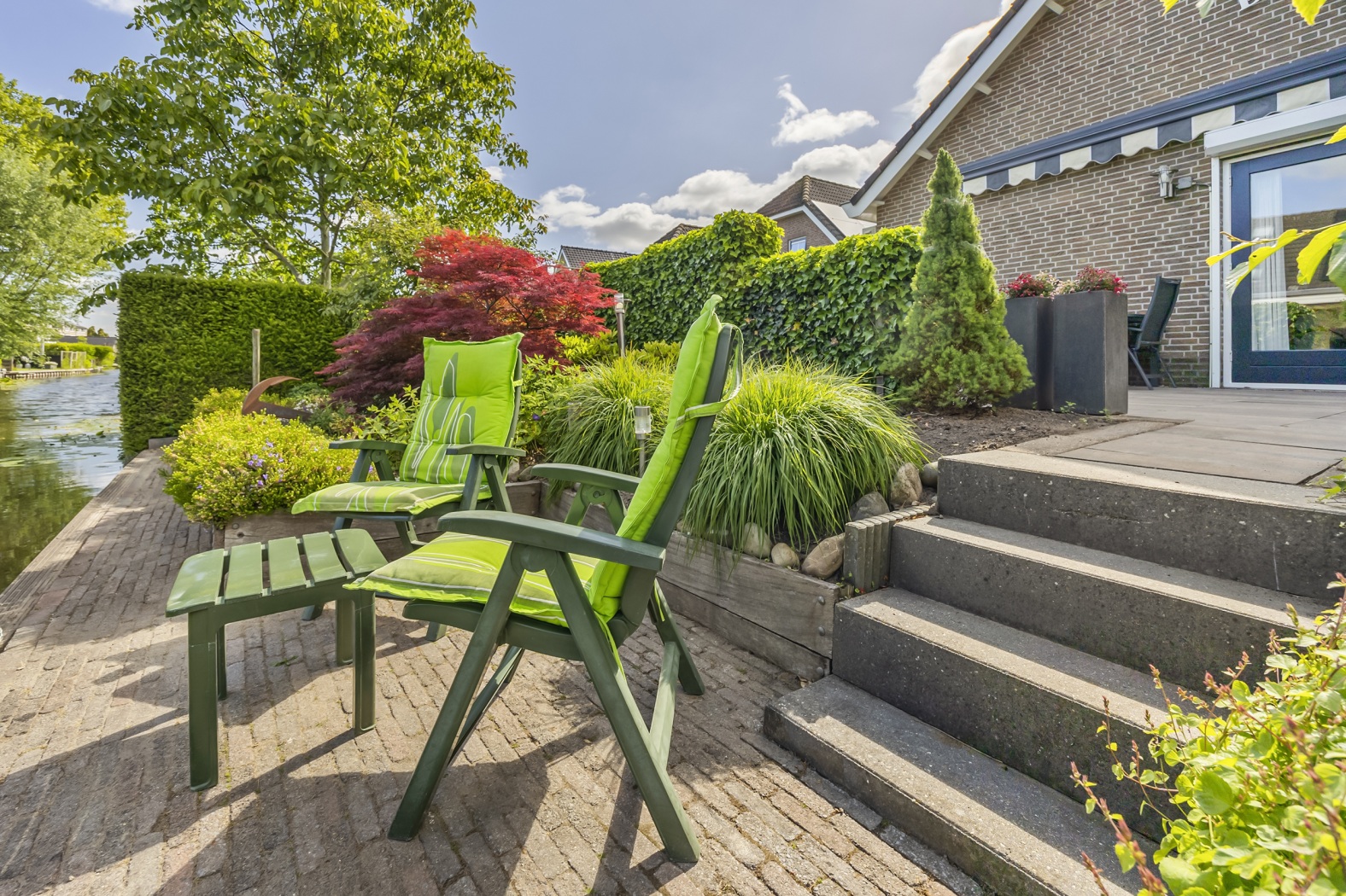 Aan de voorzijde parkeer je veilig op eigen terrein, beschut door een carport. De zorgvuldig aangelegde tuin omringt de woning met groen, gezellige zithoeken en volop zon. Het absolute hoogtepunt vormt het terras direct aan het kabbelende water. Hier begint en eindigt elke dag anders: koffie in de ochtendzon, rustig vissen, of een ontspannen tochtje met de sup of de boot.