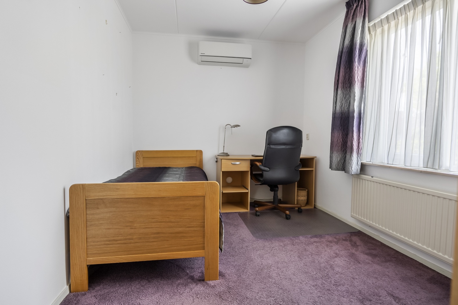 De royale hoofdslaapkamer (slaapkamer 1) biedt volop rust en ruimte. Slaapkamer 2 is ideaal als logeerkamer of thuiswerkplek en beschikt over een vaste kast en airconditioning voor een aangenaam binnenklimaat, zelfs tijdens warme zomerdagen. Beide kamers kijken uit op de groene, rustige tuin, wat zorgt voor een ontspannen woonbeleving.