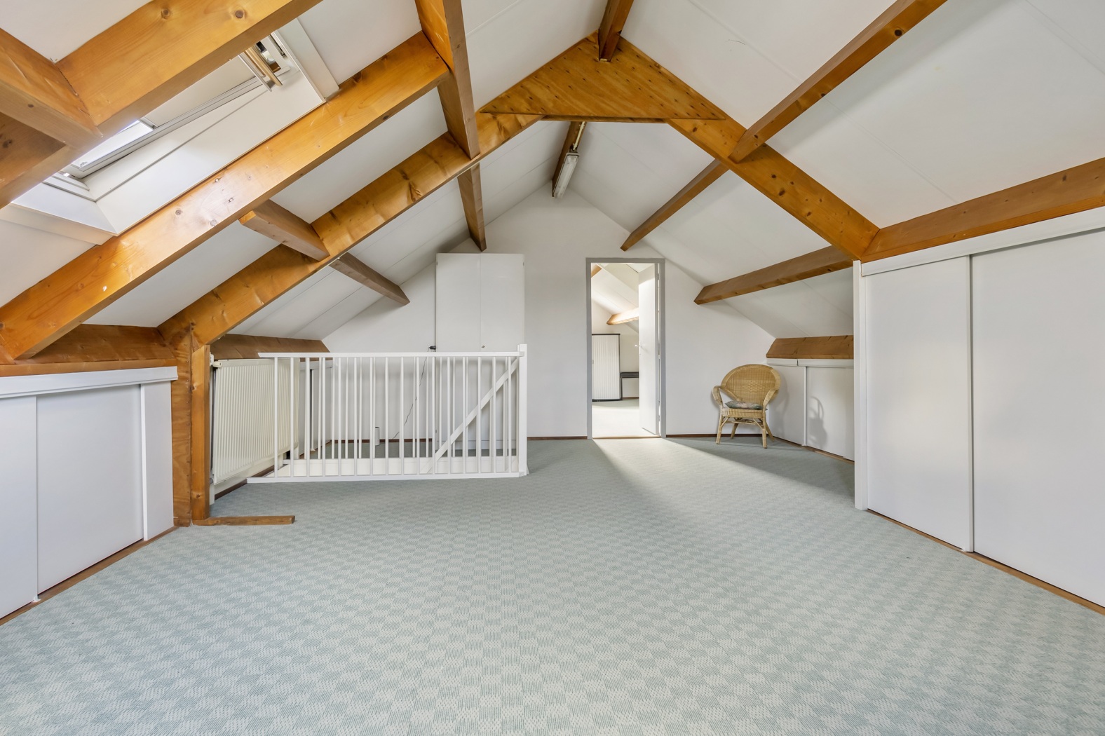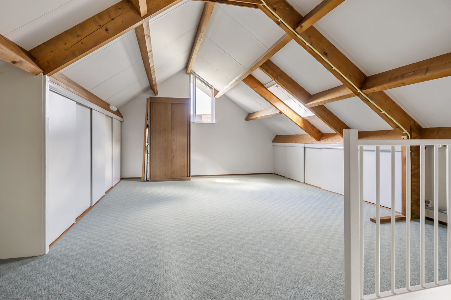 Dankzij twee dakramen én twee gevelramen valt het daglicht royaal binnen, waardoor de kamers aangenaam en veelzijdig te gebruiken zijn. Langs de lengtezijde is praktische bergruimte gecreëerd achter de knieschotten, fraai afgewerkt met schuifdeuren. Ideaal voor het opbergen van seizoensspullen en alle items die u graag uit het zicht houdt.