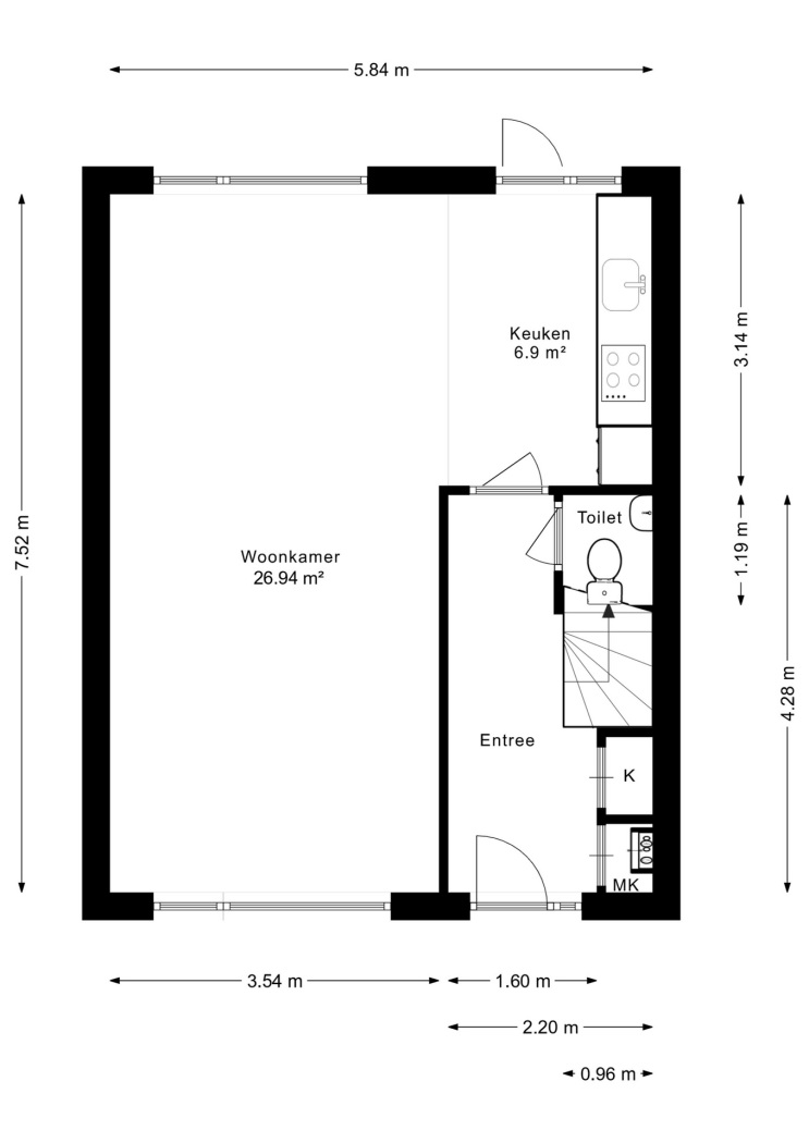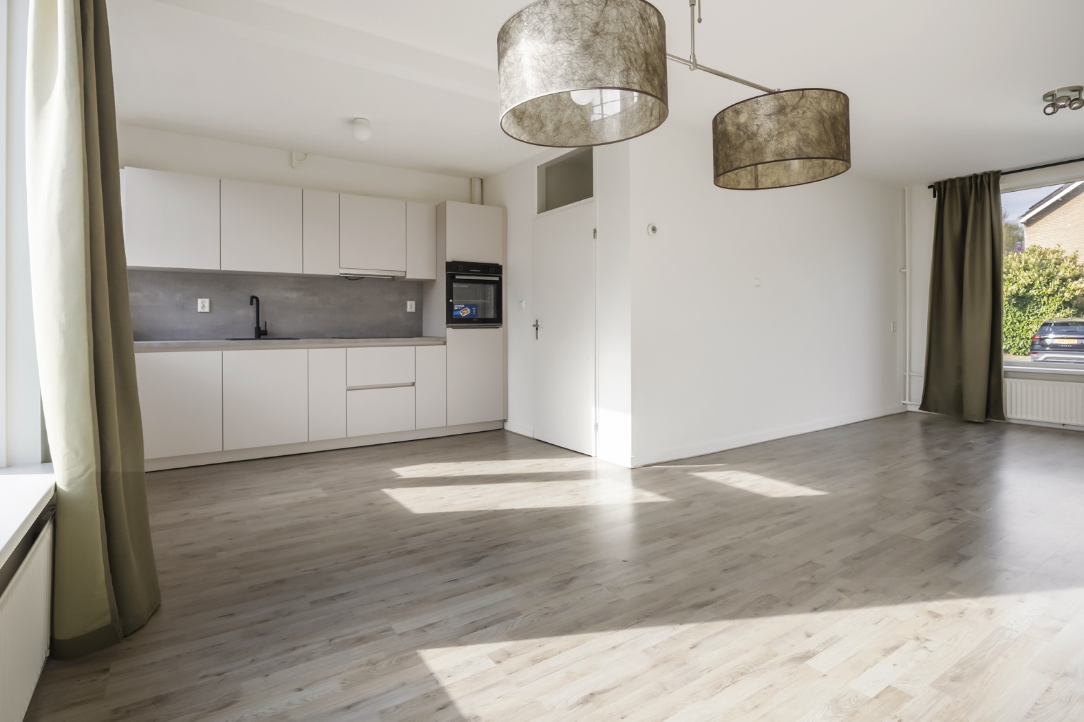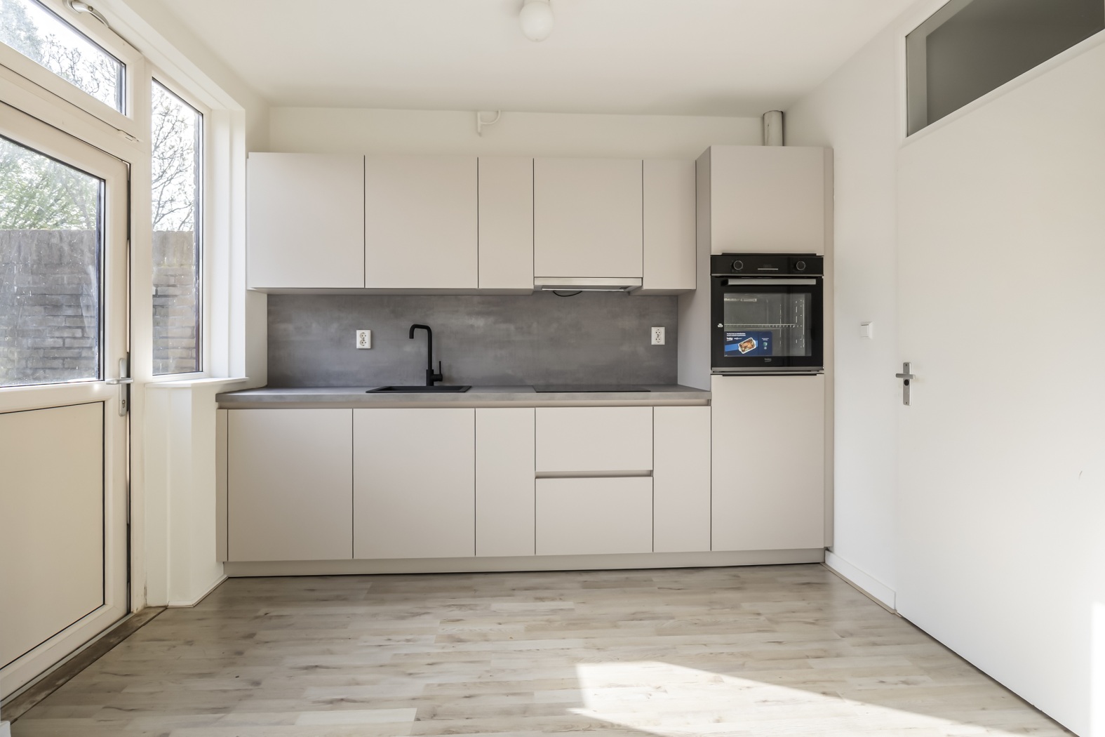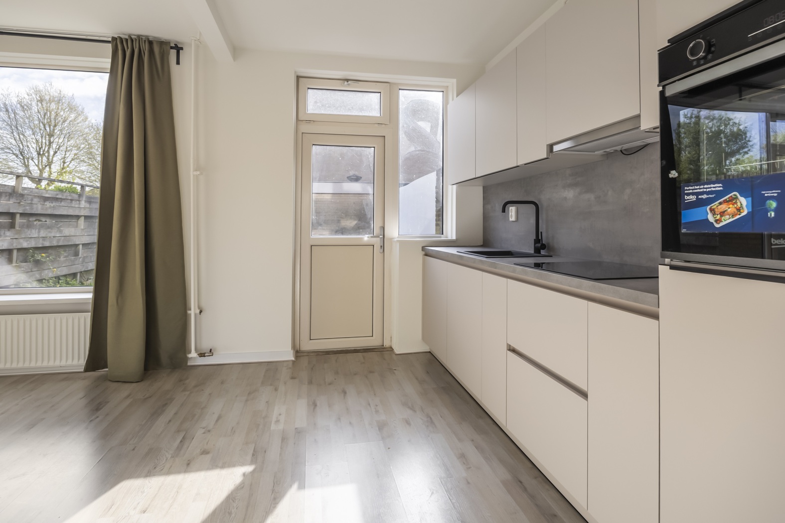 Binnen word je direct verrast door het fijne licht en de praktische indeling. De woonkamer is heerlijk licht dankzij de grote raampartijen en voelt meteen warm en uitnodigend aan. De moderne keuken is een echte eyecatcher en voorzien van diverse inbouwapparatuur, waaronder een inductiekookplaat, afzuigkap en combi oven. Hier wordt koken vanzelf leuk.