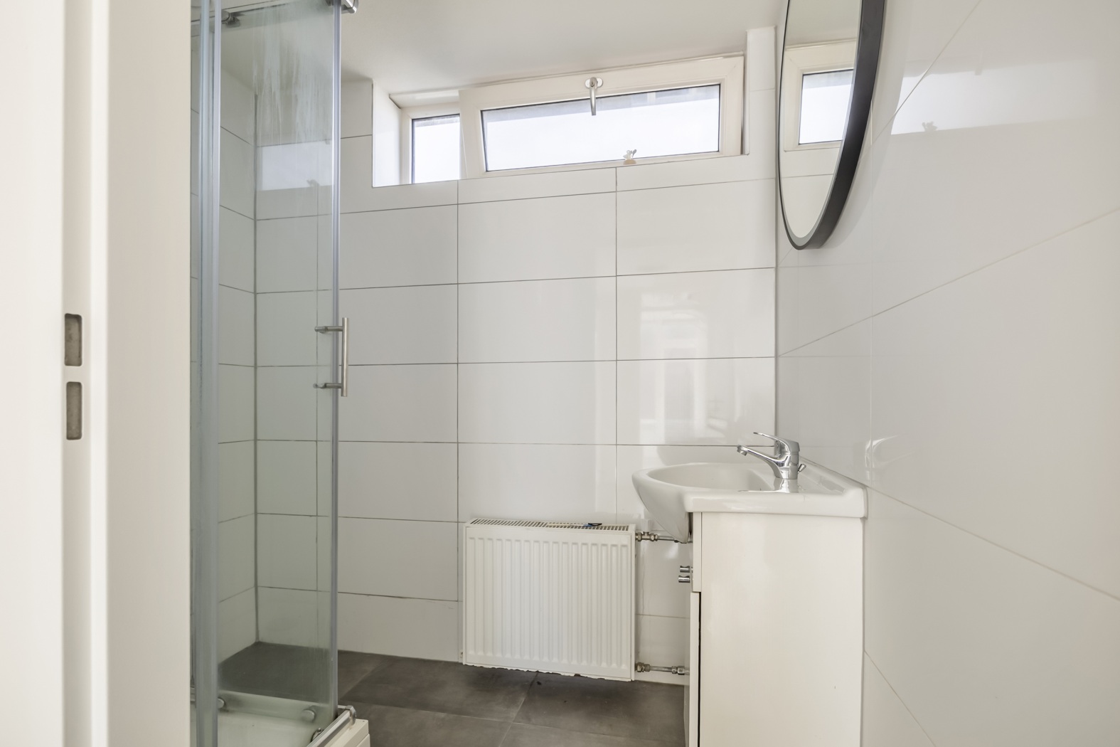 •Badkamer voorzien van douchecabine en wastafelmeubel
