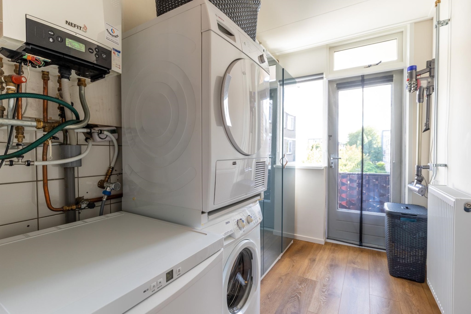Ook de badkamer is helemaal af en een plaatje om te zien. Hier is gekozen voor een combinatie van strak betegelde wanden en mozaïektegels waardoor deze ruimte super sfeervol is. Het wastafelmeubel heeft een praktische spiegelkast. Verder is er hier een inloopdouche met een stortdouche en handdouche en een designradiator. Het toilet bevindt zich in een aparte ruimte, wel zo fijn en is eveneens modern afgewerkt met een zwevend toilet.