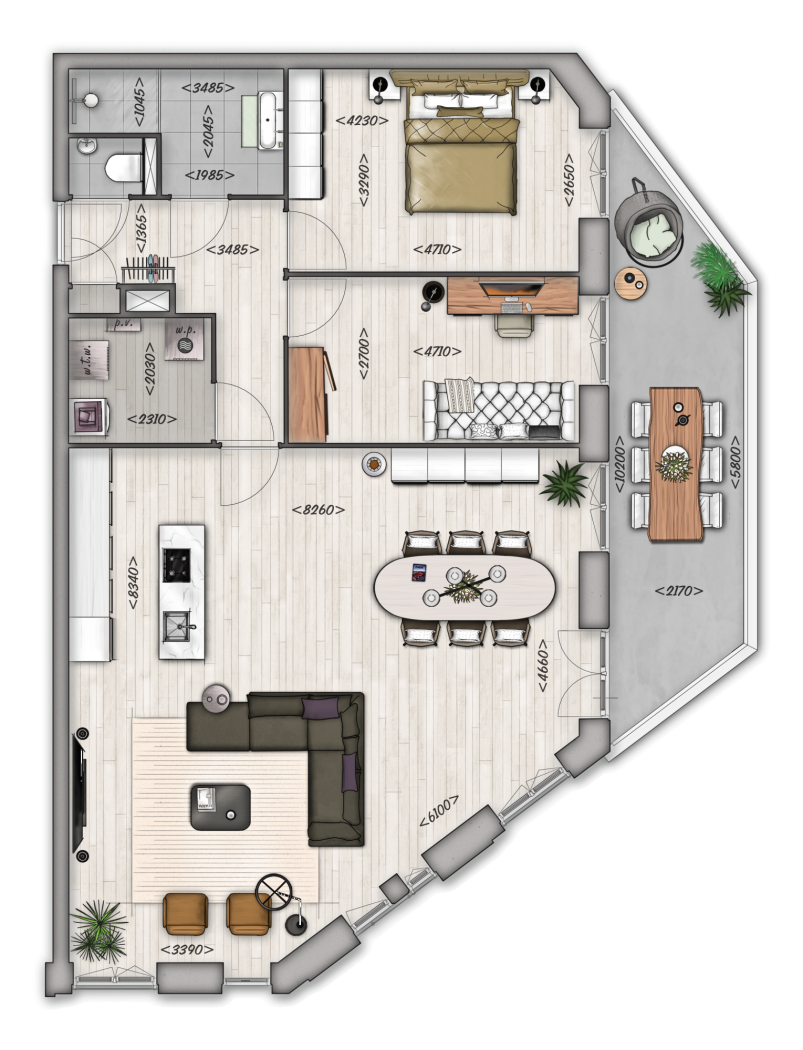 Uw nieuwe appartement zal standaard niet voorzien worden van een keuken. U kunt deze naar wens na oplevering van uw woning laten plaatsen geheel passend bij de wensen voor
