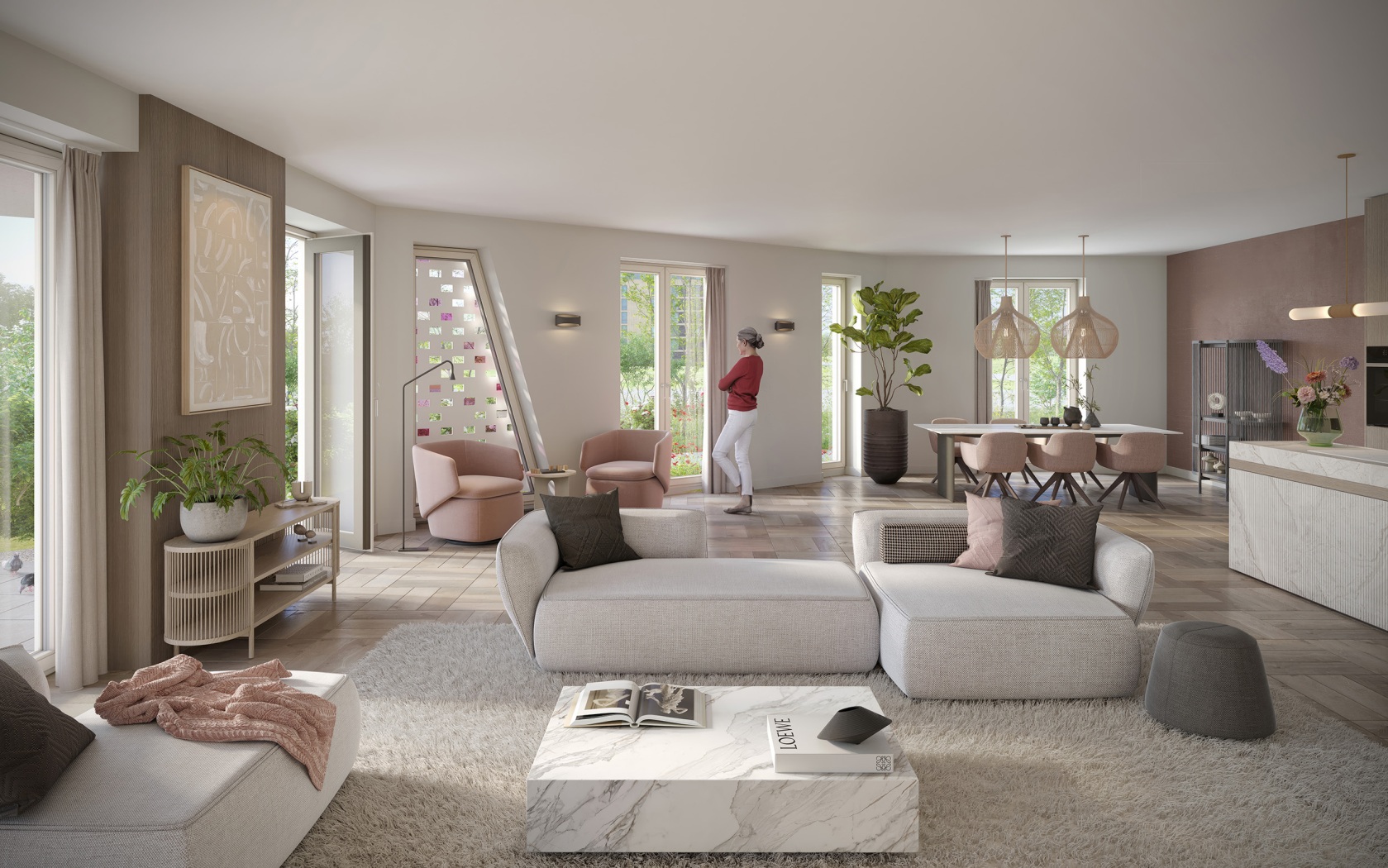 Vloerverwarming en -koeling zorgen voor een gelijkmatige temperatuurverdeling in de ruimtes, wat het comfort verhoogt. Bovendien passen de gebouwen perfect in een parkachtige omgeving, met half verdiept parkeren en een prachtig groen ingerichte tuin,
