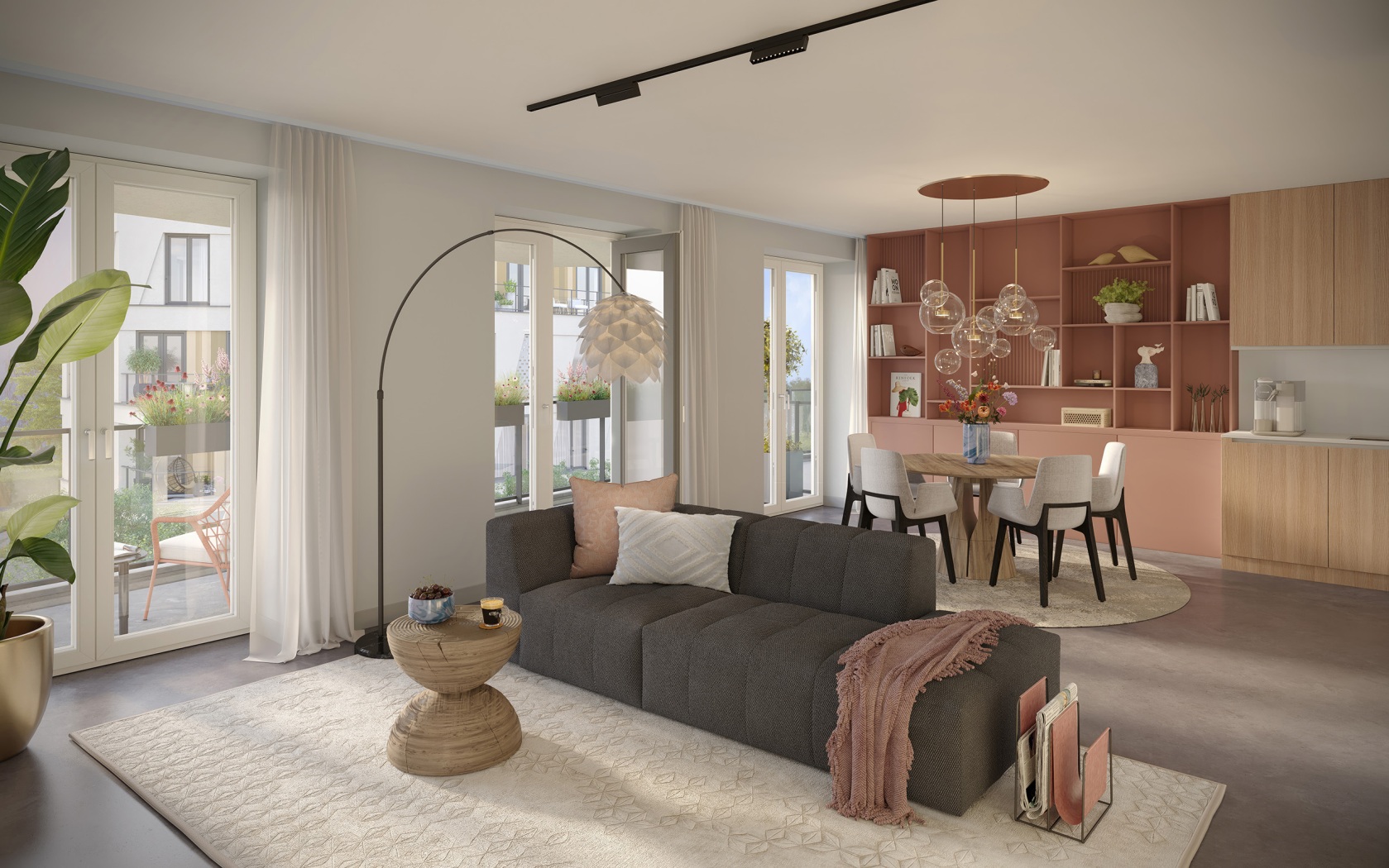 Vloerverwarming en -koeling zorgen voor een gelijkmatige temperatuurverdeling in de ruimtes, wat het comfort verhoogt. Bovendien passen de gebouwen perfect in een parkachtige omgeving, met half verdiept parkeren en een prachtig groen ingerichte tuin,
