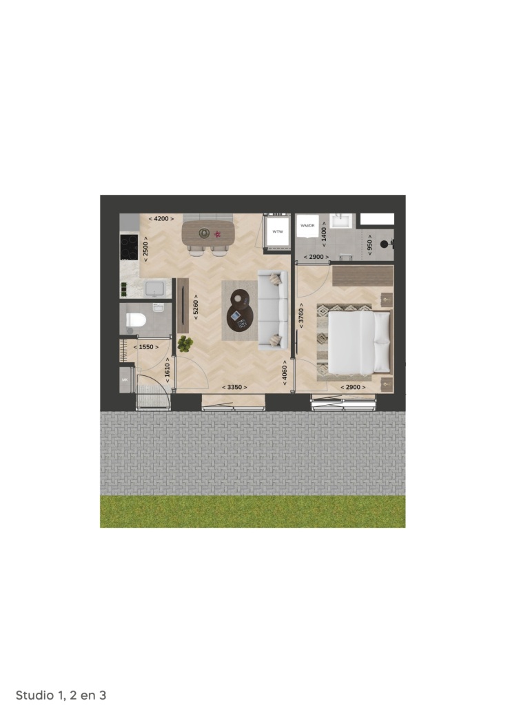 * 3 compacte appartementen op de begane grond van ca. 42 m²