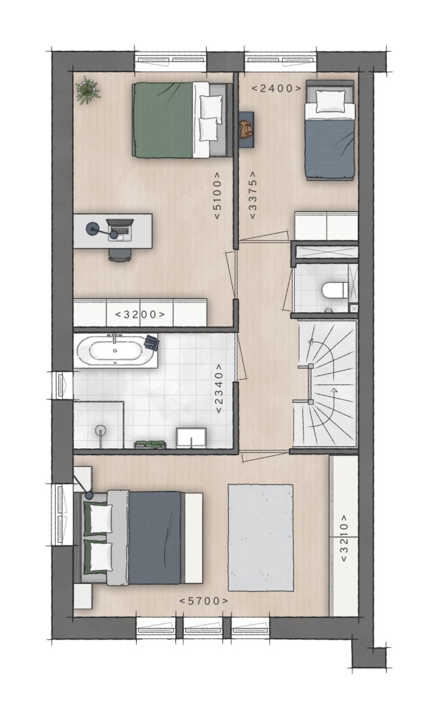 • Ruime verdieping met mogelijkheid tot extra kamer(s)