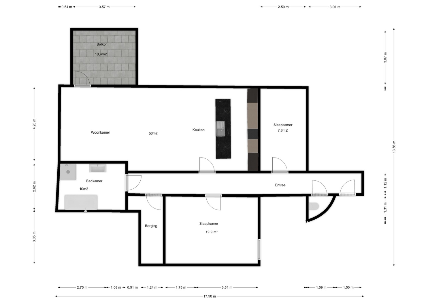 Keuken, badkamer en vloer naar eigen smaak af te werken