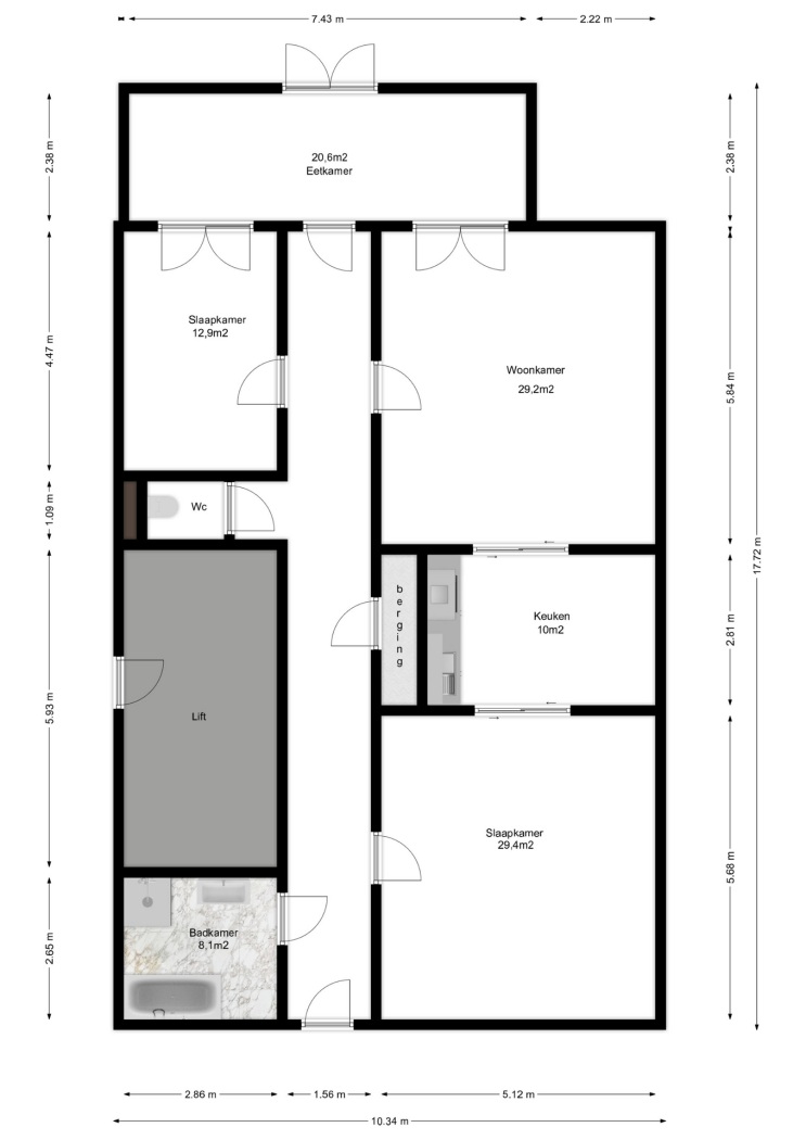 Keuken, badkamer en vloer naar eigen smaak af te werken
