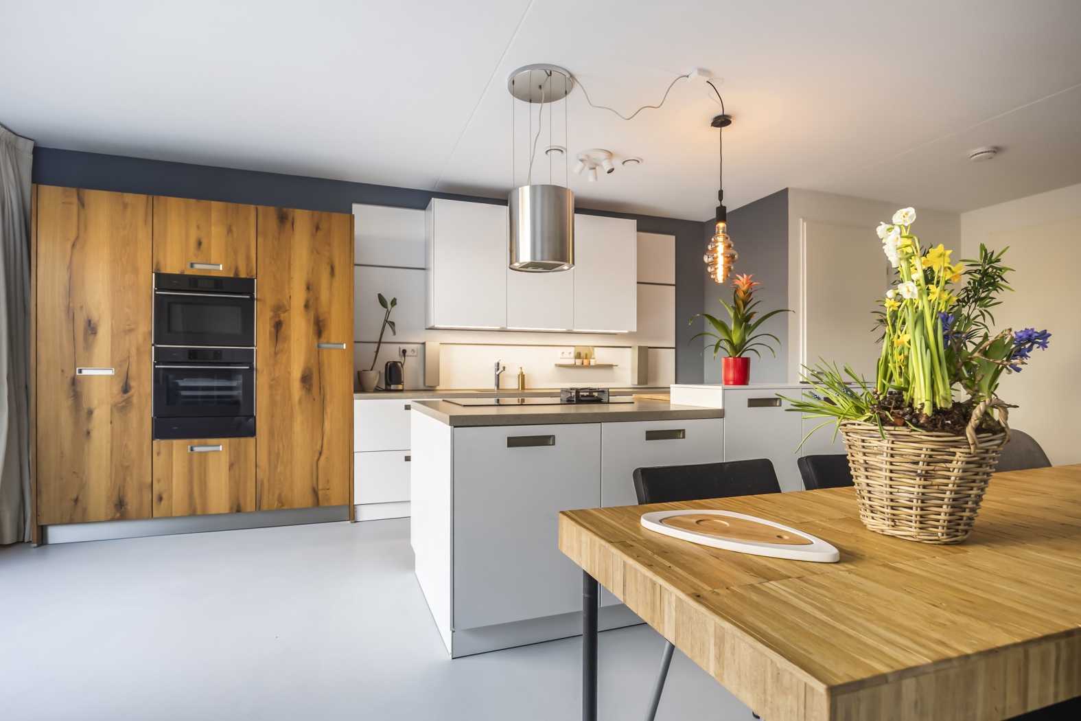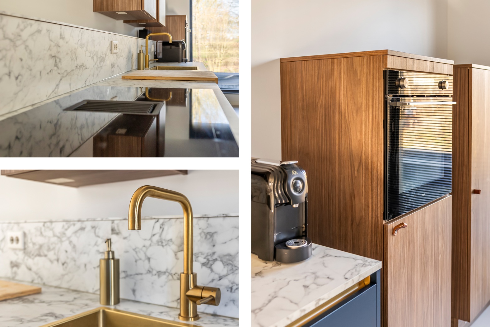 De open keuken is een echte eyecatcher: modern vormgegeven en uitgerust met een luxe kookeiland. De keuken beschikt over hoogwaardige inbouwapparatuur, waaronder twee combi-ovens, een sous-vide lade, een combi kookplaat (gas én inductie), een vaatwasser, een ruime koelkast en een stijlvolle design afzuigkap.