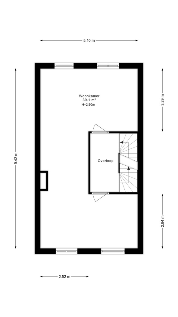 Via de overloop kom je in de royale, lichte doorzonwoonkamer: een heerlijke leefruimte met een prachtig uitzicht op de groene stadswal.