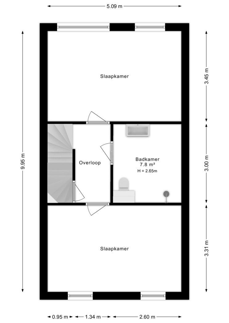 Op de eerste verdieping bevinden zich twee ruime slaapkamers, stuk voor stuk prettig van formaat en flexibel in te richten als slaap-, kinder- of werkkamer. De luxe badkamer is een echte eyecatcher en beschikt over vloerverwarming, een ruime inloopdouche, een royale wastafel en een toilet. In deze ruimte staat ontspanning centraal en kom je echt tot rust.