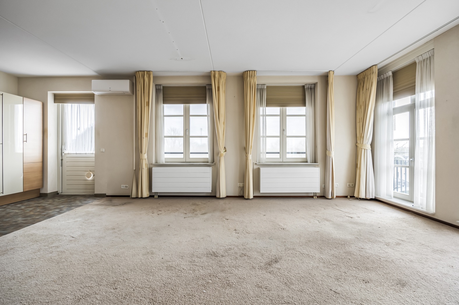 Via de hal zijn alle ruimtes van het appartement bereikbaar. De royale woonkamer van ca. 33 m² is heerlijk licht dankzij de hoekligging met maar liefst drie ramen aan de voorzijde met Frans balkon en twee zijramen. Hierdoor geniet je de hele dag van een prettige lichtinval en een ruimtelijk gevoel.